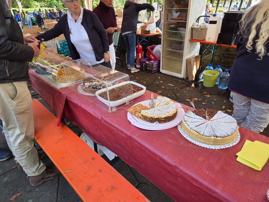 ...zuftiges Lunch - Grünkern Bratwurst, ein ebensolcher Burger und Kuchen standen zur Auswahl. Alles sehr lecker!