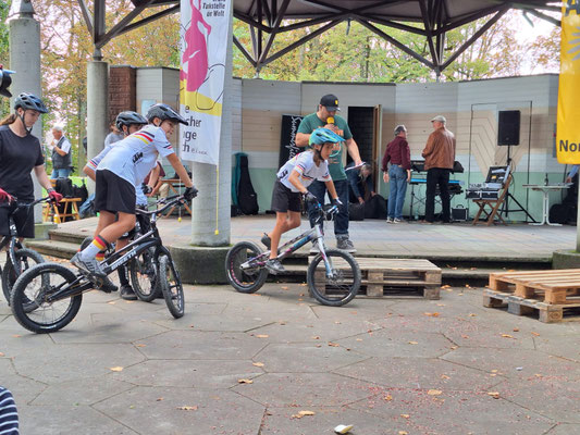 Unser Dreirad war der Star der Veranstaltung beim Stehen, Laufen und Fahren. Wir hatten die Kinder zur Mitfahrt über eine Distanz von ca. 60 m eingeladen, die restlos begeistert waren, und auch einige Frauen ließen sich das Erlebnis, für ein paar Sekunden Bertha zu sein, nicht nehmen.